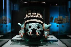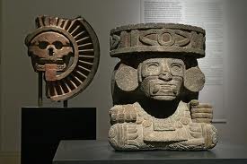A la derecha de los templos el Tzompantli, o altar recubierto de calaveras humanas cubiertas con estuco.