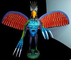 Estan hechos de diferentes tipos de papel o de madera tallada y pintada con colores alegres y vibrantes.