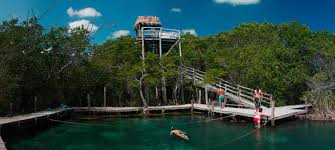 El cenote es un lugar natural exclusivo, ideal para los amantes de la naturaleza y la aventura, a quienes les ofrece su sutil fragancia de la selva y los invita a bucear en sus refrescantes aguas que desembocan directamente en el mar.