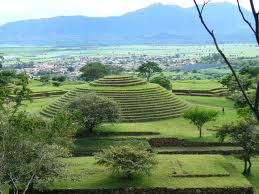 Zona arqueológica en Teuchitlán Jalisco, con estructuras circulares concéntricas, cuya arquitectura se basa en una pirámide principal integrada por dos niveles diferenciados, divididos por una banqueta superior.